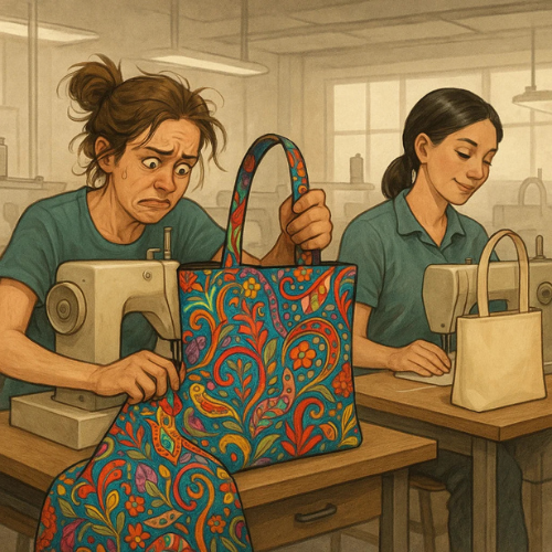 - Giải pháp: luôn yêu cầu xưởng cung cấp ít nhất 1–2 mẫu thử để kiểm tra kiểu dáng, ngăn chứa, chất liệu, đường may.